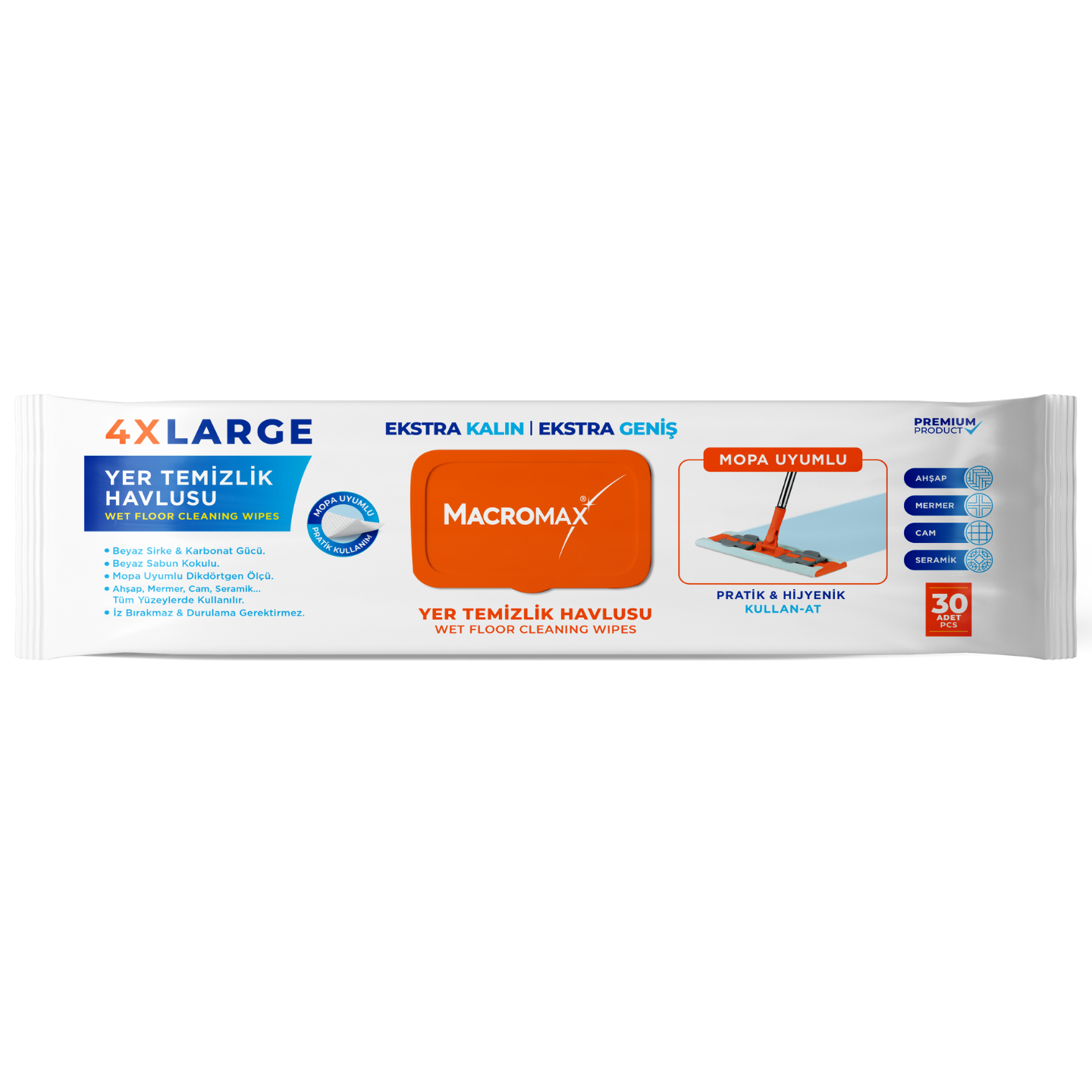 Macromax Wet Floor Cleaning Wipes 4X Large – 30 Pieces